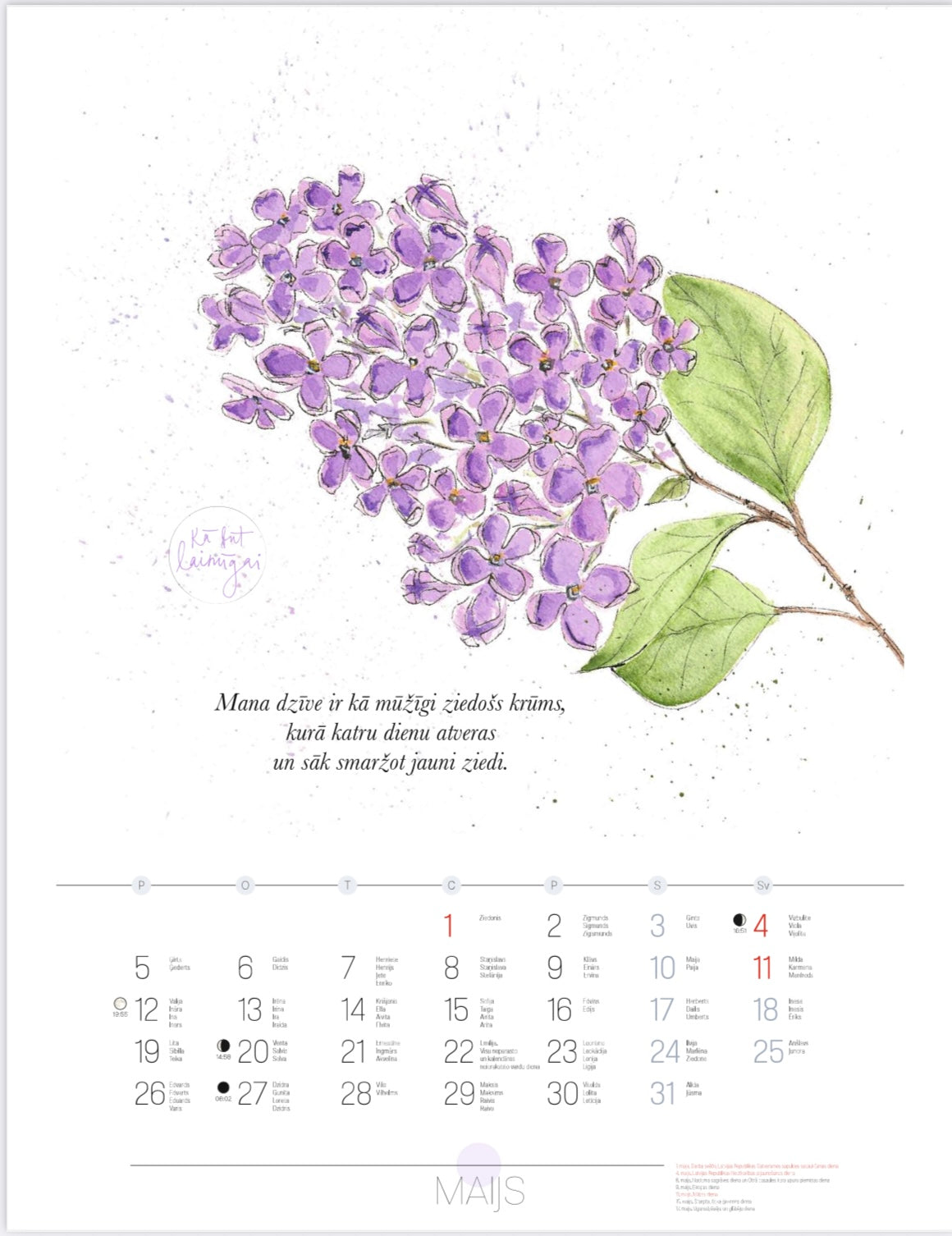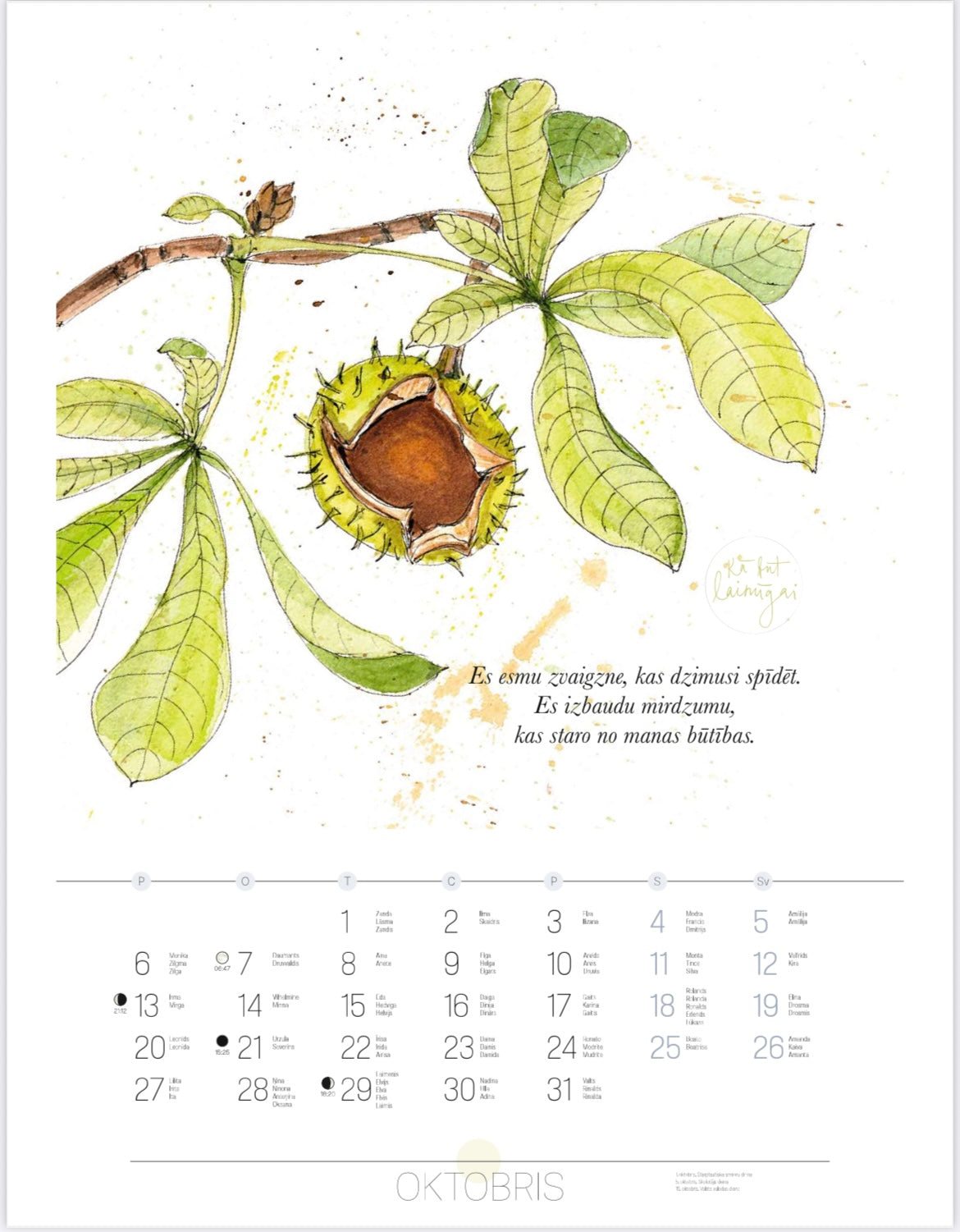 2025. gada kalendāram ilustrācijas ir zīmējusi latviešu ilustratore Aiga Kalniņa.