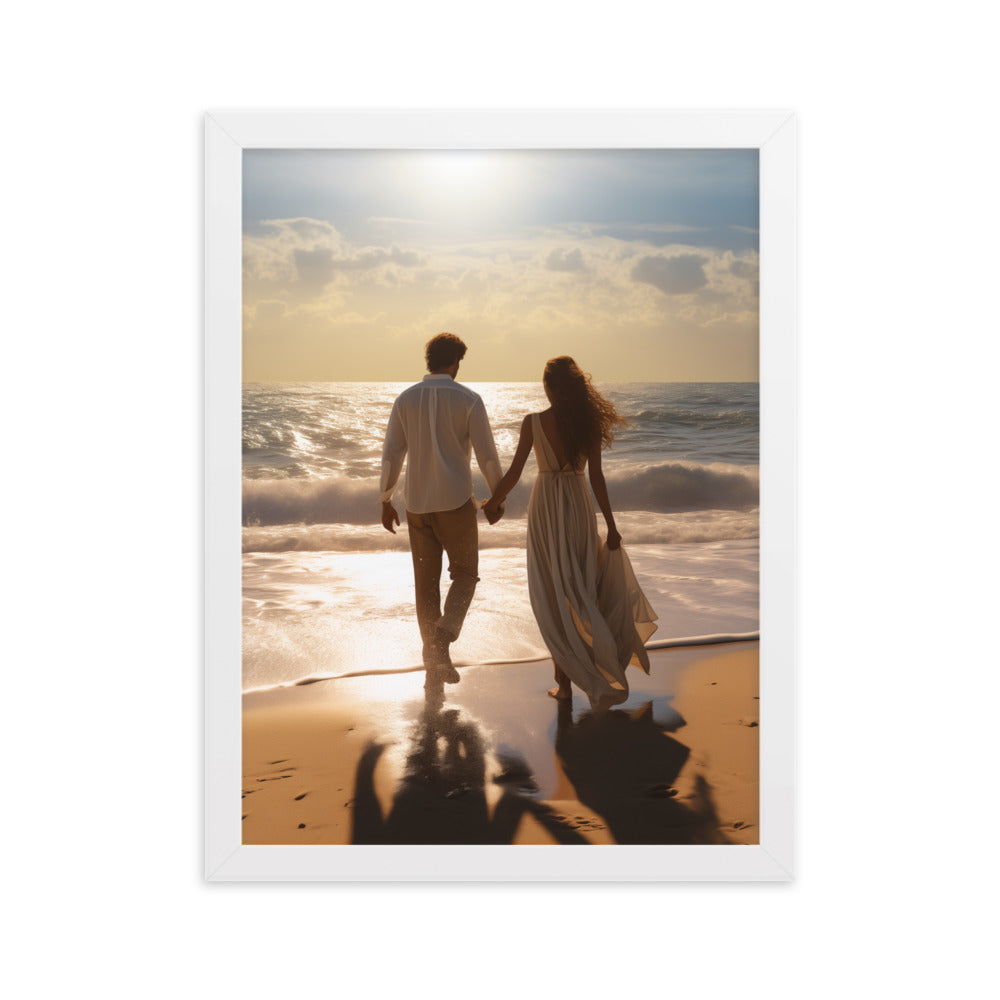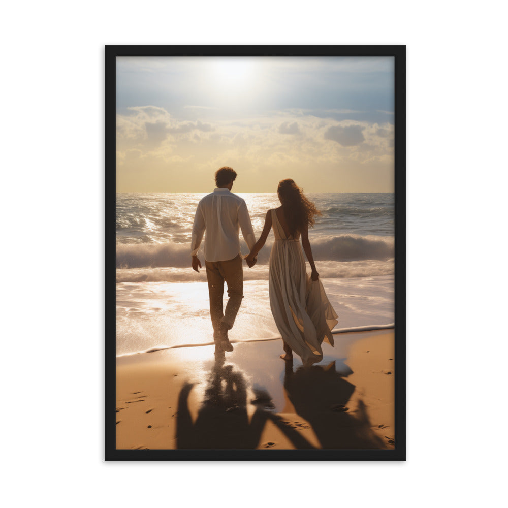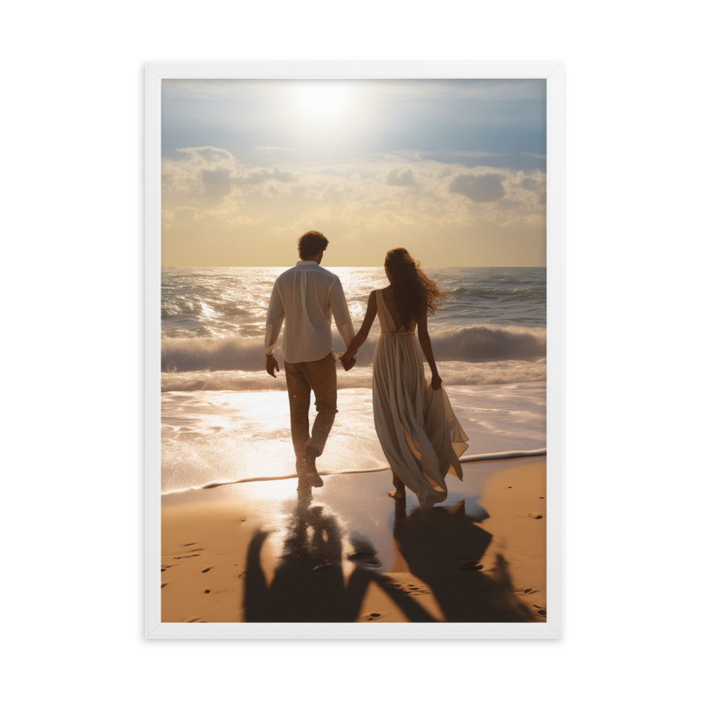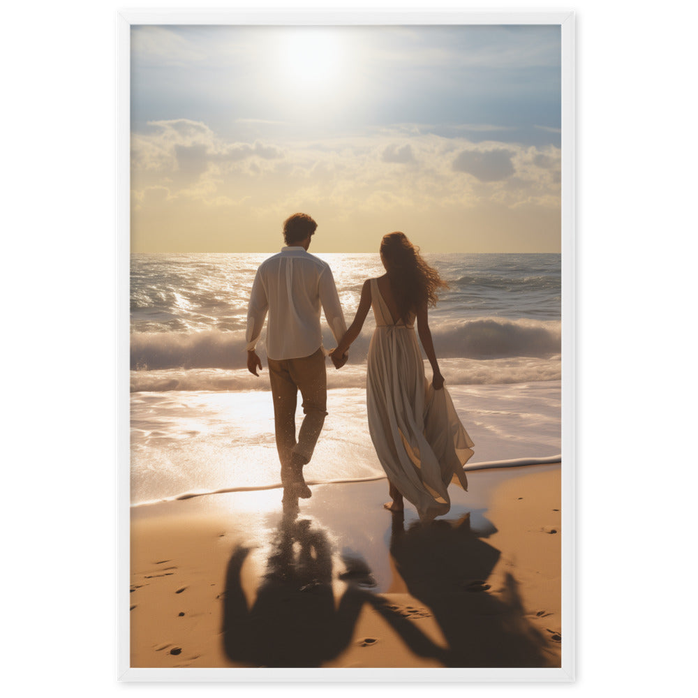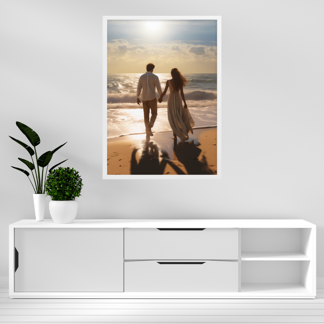 Vai savā dzīvē tu vēlētos laimīgas attiecības un lieliski kopā pavadīt laiku ar partneri? Piedāvājam tev savā vidē ienest attēlu ar laimīgu pāri, kas pavada laiku kopā pastaigājoties skaistā pludmalē. Pāris ir sadevies rokās un dodas vienā virzienā. Ir skaita saulaina diena.