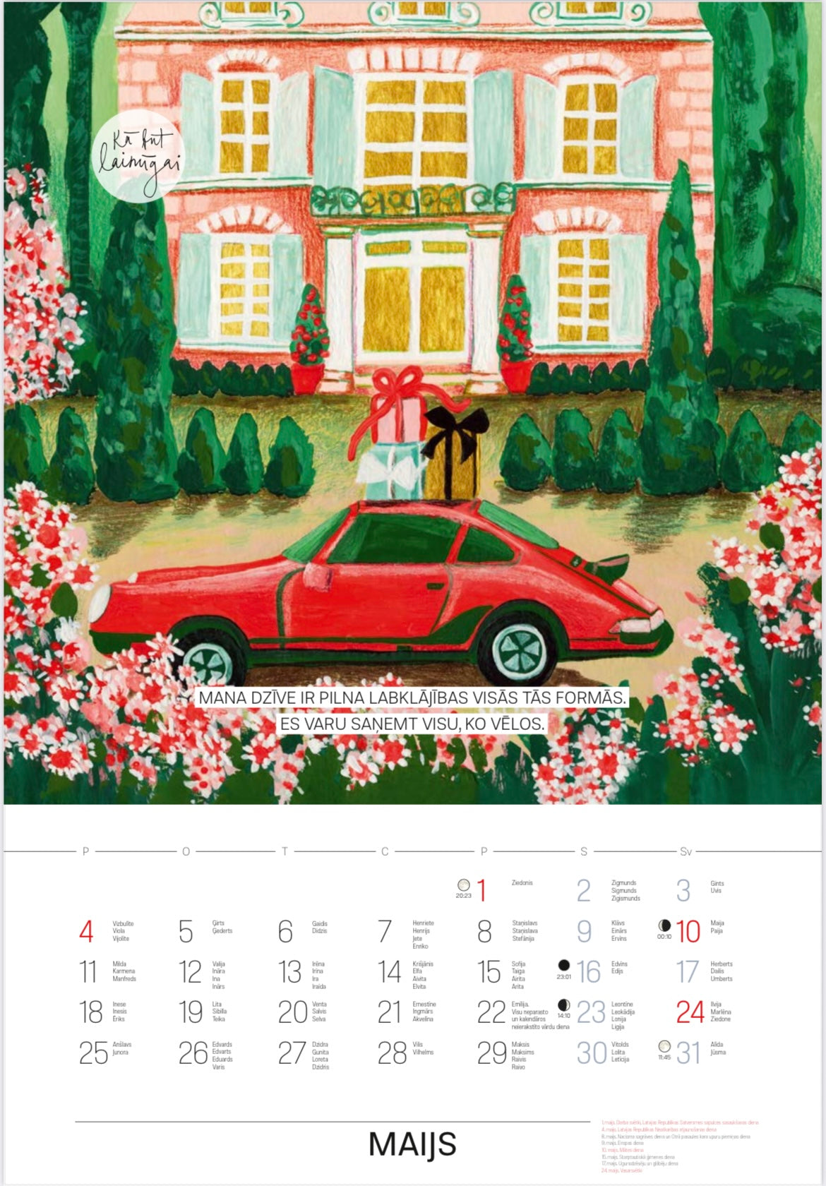 "Iedvesmas kalendārs 2026" ir skaists liels (A3 izmērs) sienas kalendārs ar skaistām bildēm un iedvesmojošām afirmācijām, kas katru dienu dos iedvesmas devu un izdaiļos māju.